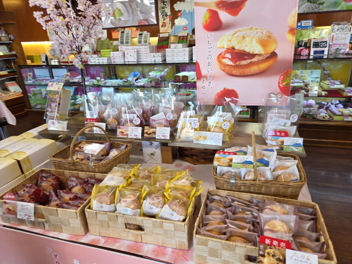 뭔가 기념품 가게 처럼 생겨서 일단 주차하고 들어가 봤는데, 유명한 오미야게/ 디저트 가게였던 것이다. (이름은 절대 디저트 가게 안같음..)