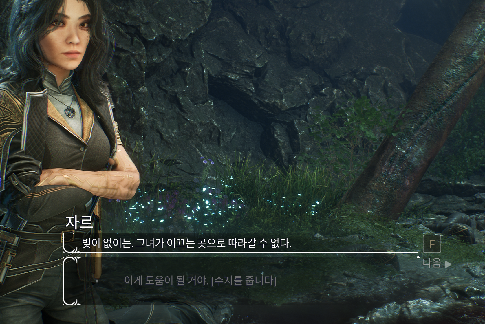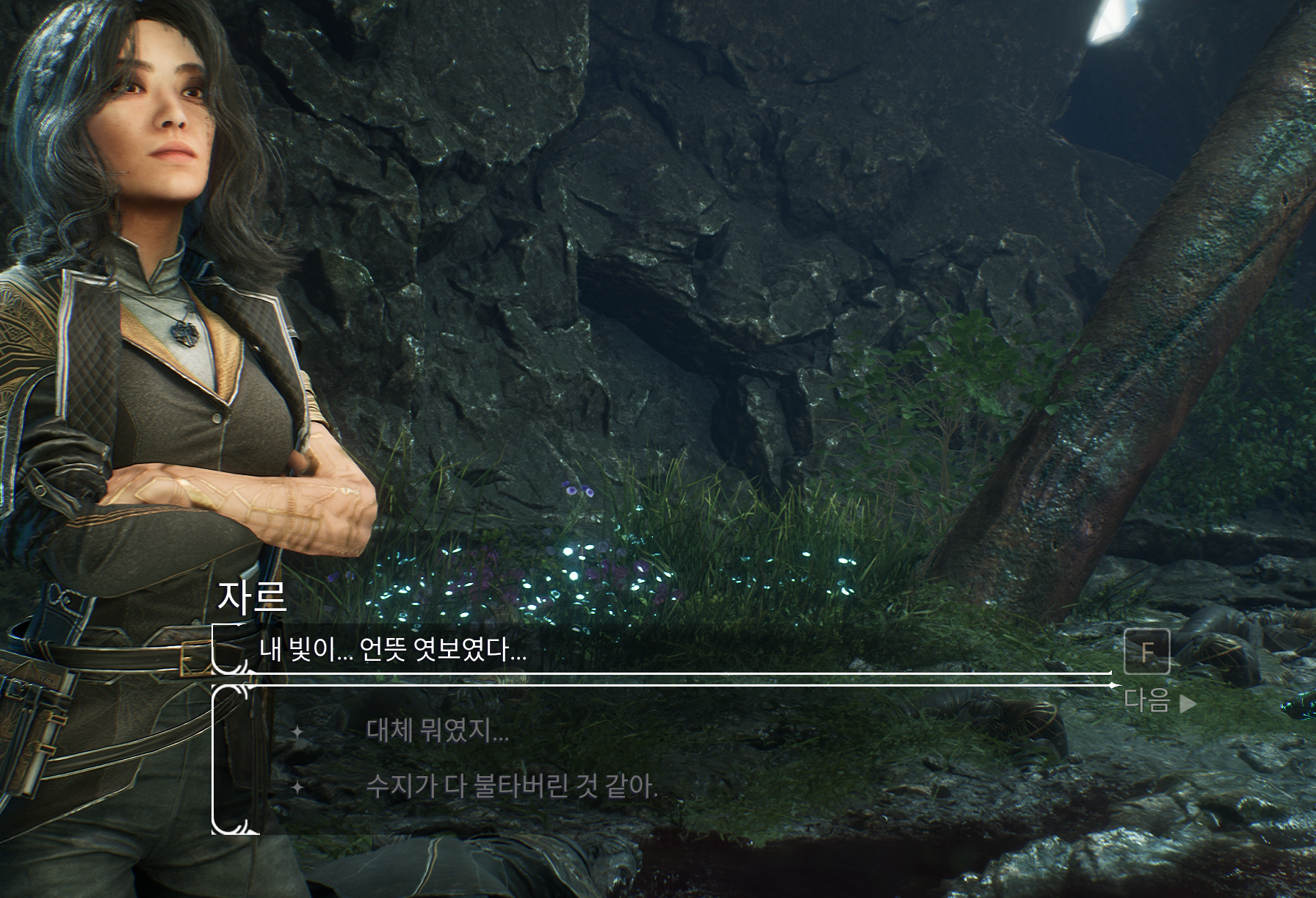 대화하고, 야영지 키고 진행해서 맵을 뒤지다보면, 장애물 뒤에 아이템을 찾을 수 있는데, "수지"라는 퀘스트 아이템이 나온다.(쉽게 찾을 수 있다)