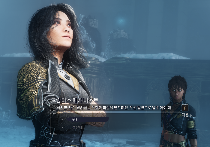 중간쯤의 그랑디스 패셔니스트 친구에게 말을 걸면, 자기를 달변으로 꺽으면 2명에게 의상을 준다고 한다.