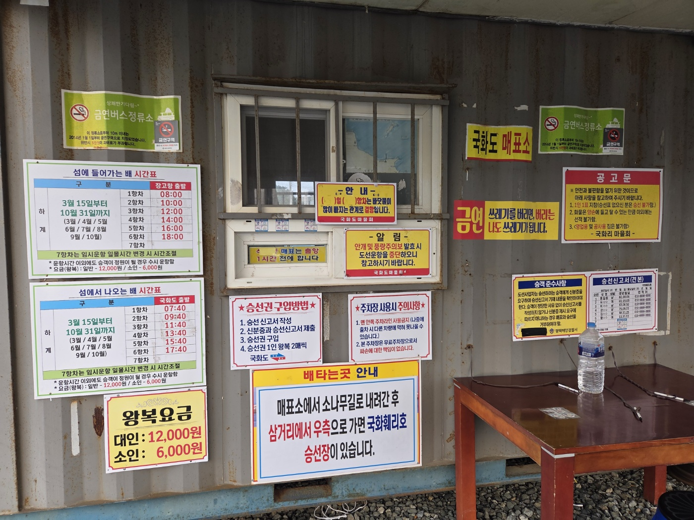 배 시간대는 아래와 같고, 3:40분 출도 배의 경우 탑승객이 너무 많아서 20분 뒤 한 번 더와서 태우고 나갔다 ㄷㄷ
