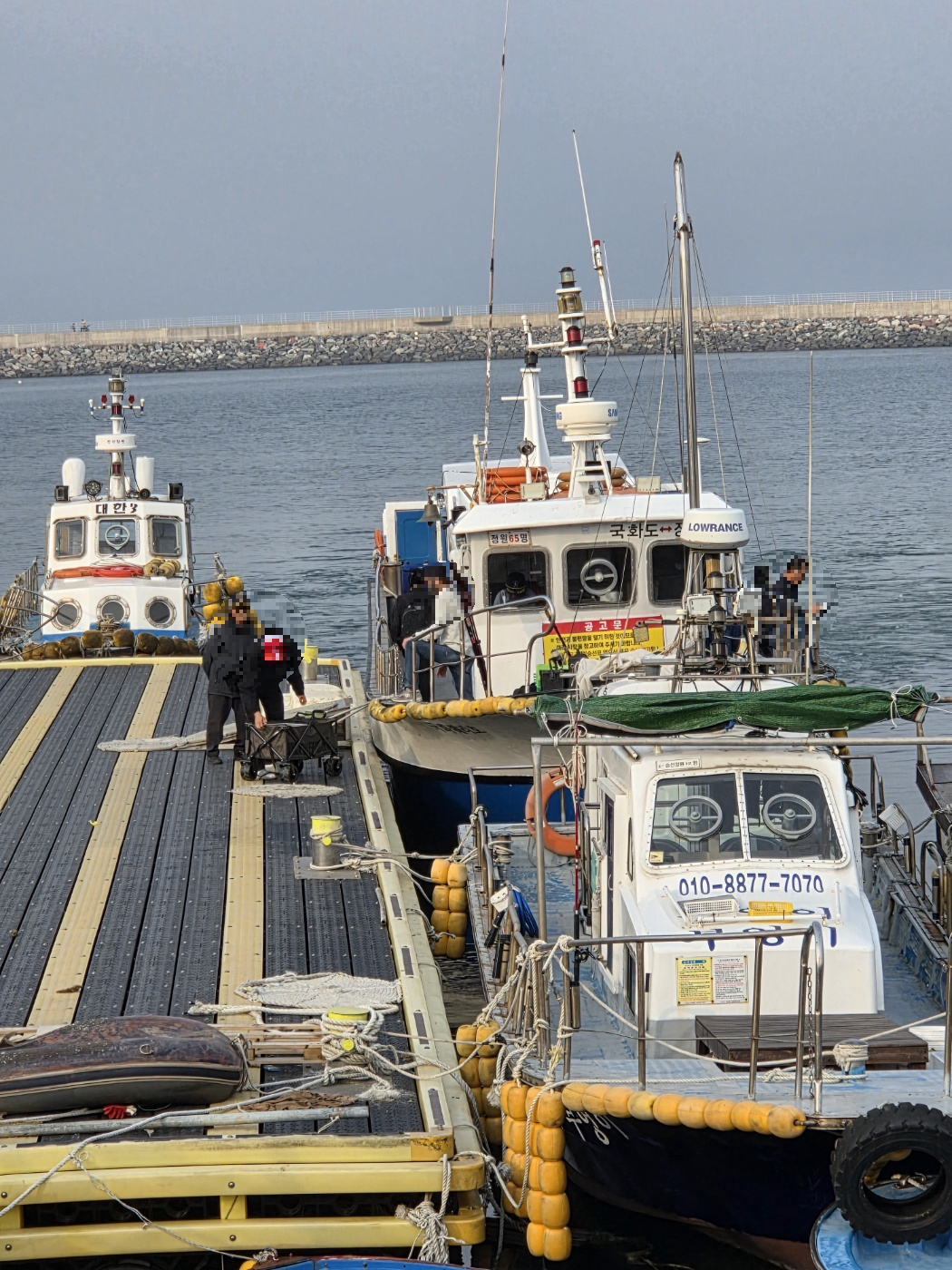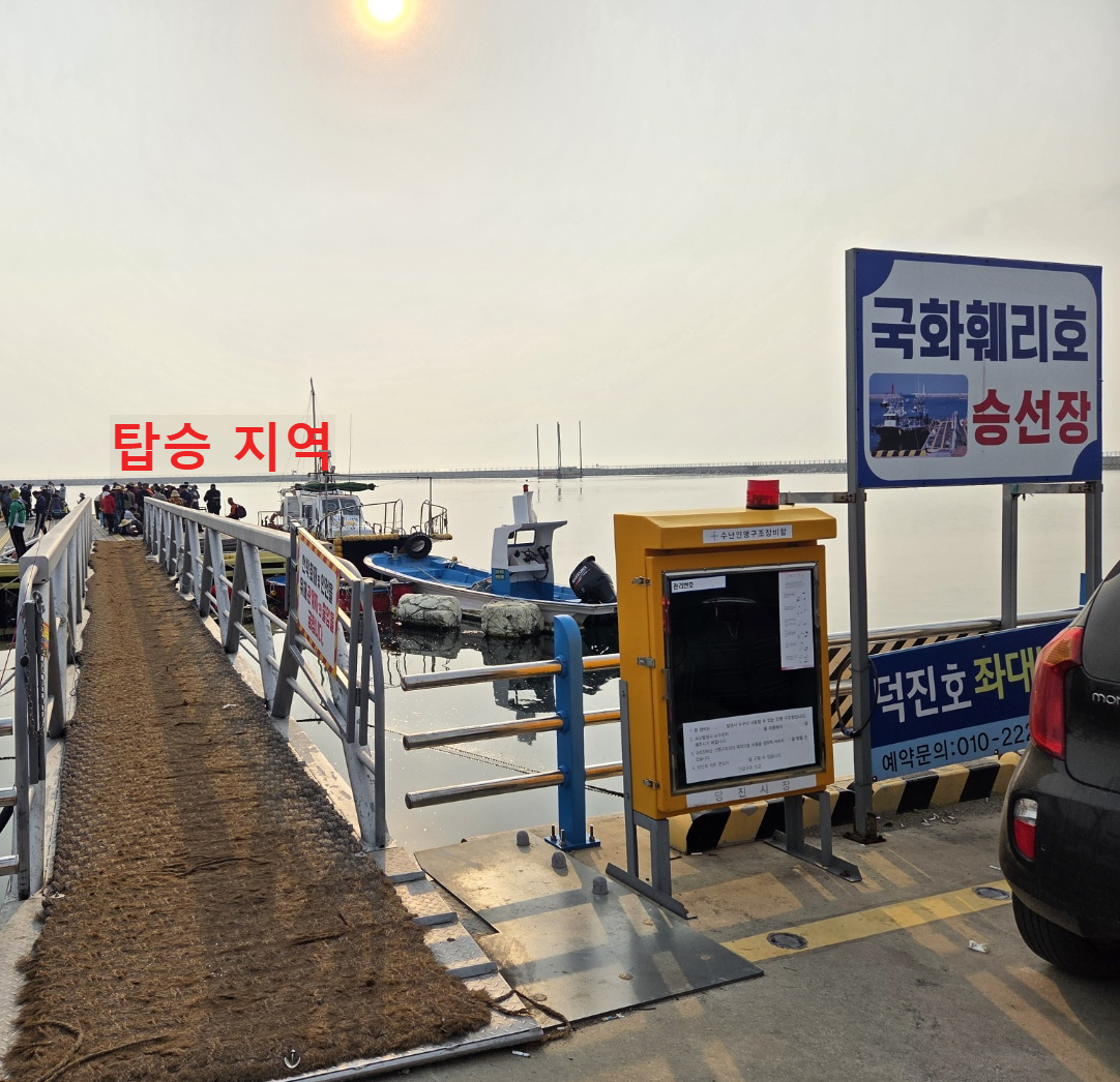 우측 선착장이고, 사진과 같이 "국화훼리호 승선장" 간판이 있다. 선착장 제일 안쪽은 좌대 배 타는 곳이고, 국화도 가는 배는 선착장 우측 발판에 줄서면 된다.