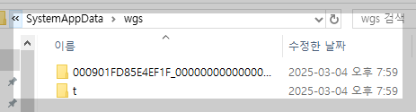 3. SystemAppData 폴더 > wgs 폴더 > 숫자로 긴 폴더 클릭
