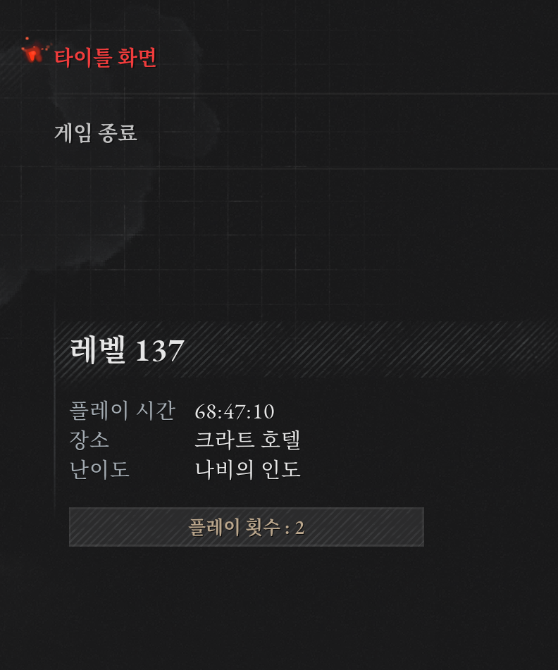 접속해서 불러오기하면 좀 이상한 세이브 파일(레벨과 플레이시간이 맞지 않음)로 보이는데 들어가 보면 내가 플레이하던 파일이 맞다. (이건 무슨 버근지 모르겠다 ㅡㅡ, 안옮겨져서 개식겁했네 정말)