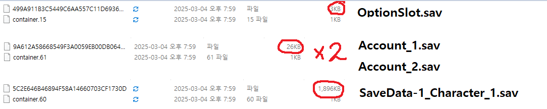 3) 폴더를 열어서 제일 큰 용량의 파일의 이름을 SaveData-1_Character_1.sav로 이름을 바꿔준다.