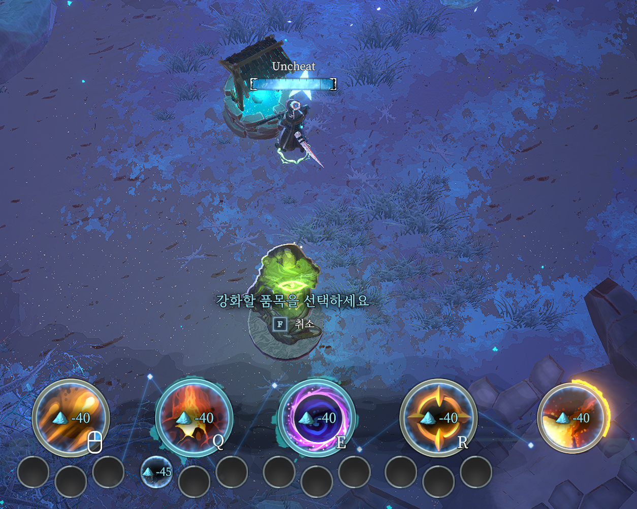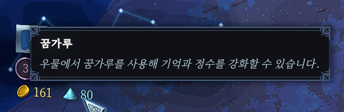 파밍한 꿈가루를 이용하여, 스킬과 정수를 업글할 수 있다.