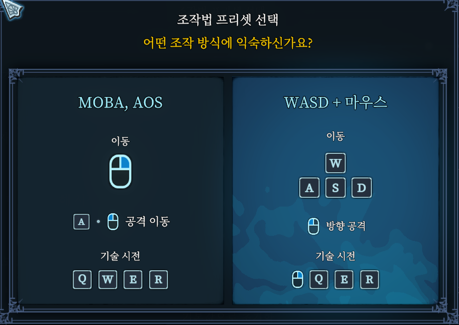 절대 wasd로 조작하자. 잔무빙이 많아서 피로감이나 쉬운게 wasd 가 훨씬 쉽다. 나는 일부러 어렵게 하고 싶다면 마우스 조작 말리진 않는다;; 마우스 이동하다 wasd하면 게임이 너무 쉬워진다!!