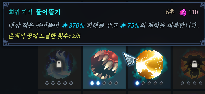 물어뜯기: 무적인 보스에도 쓰면 피흡이 된다. 막넴 무적때 피통유지가 첨엔 어려운데, 이럴때 물뜯만한게 없다