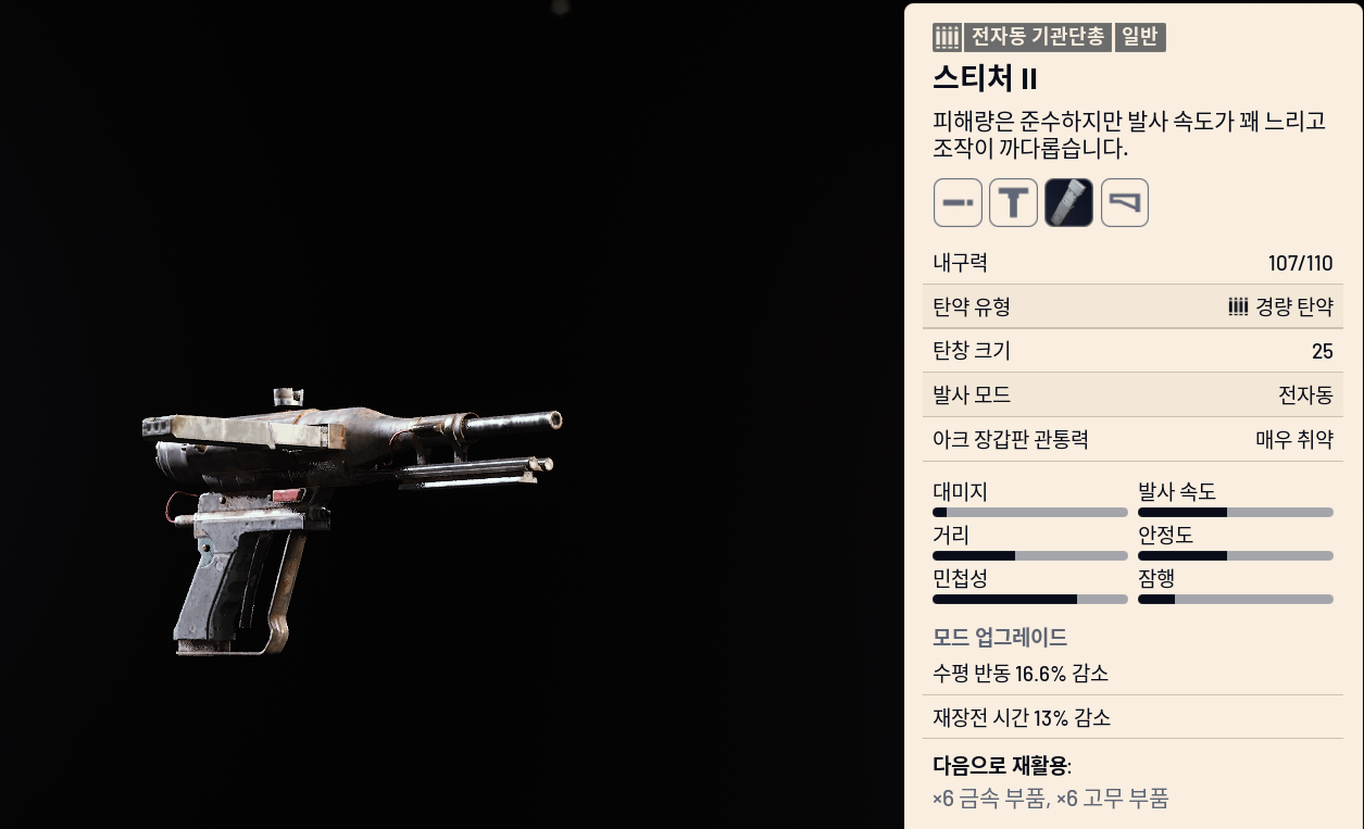 - 데미지: 40, 발사속도: 6.6, DPS: 264