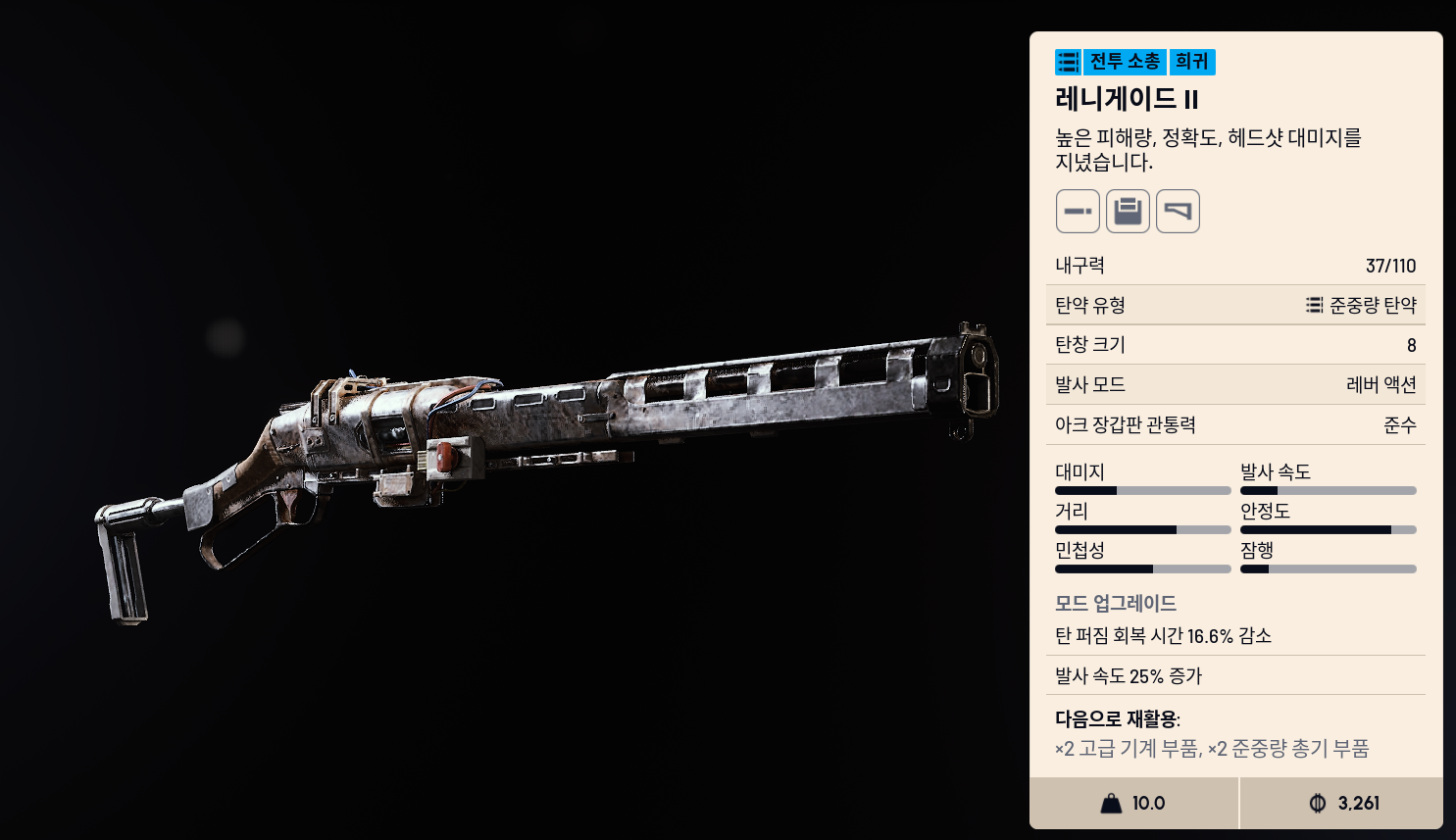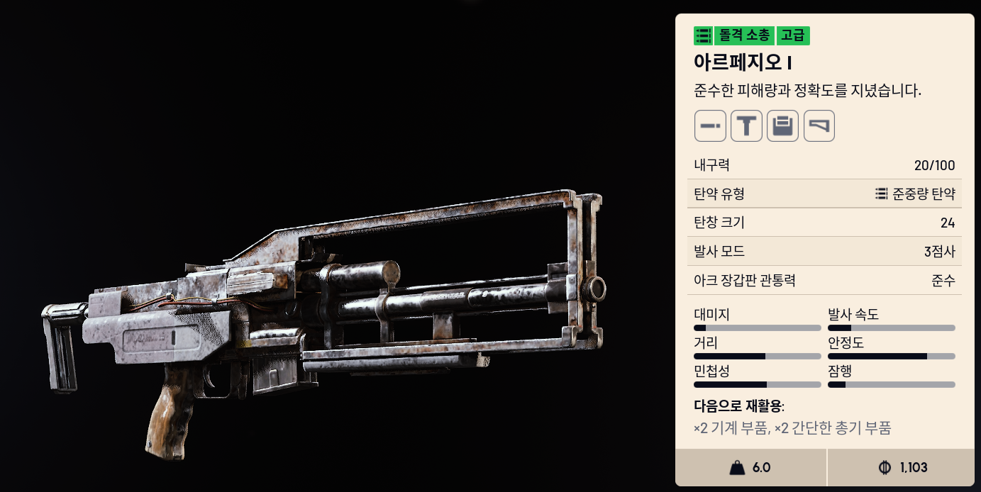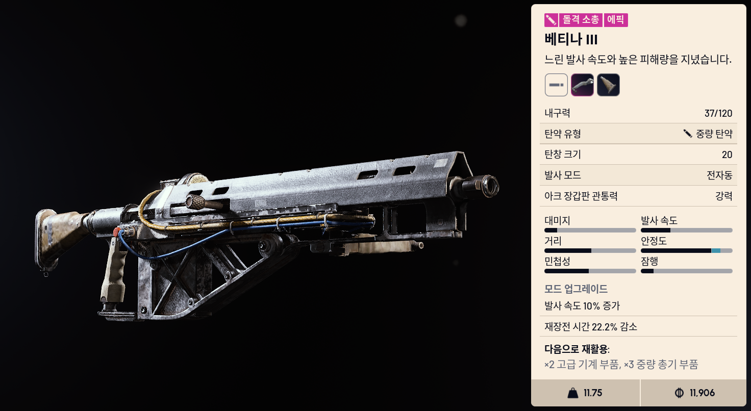 - 탄약: 준중량, 3점사