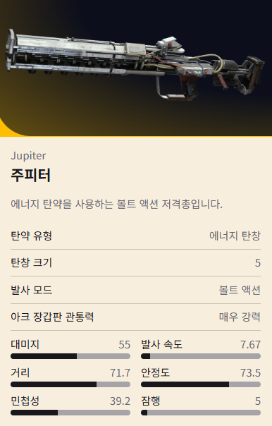 - 탄약: 에너지 클립, 볼트 액션