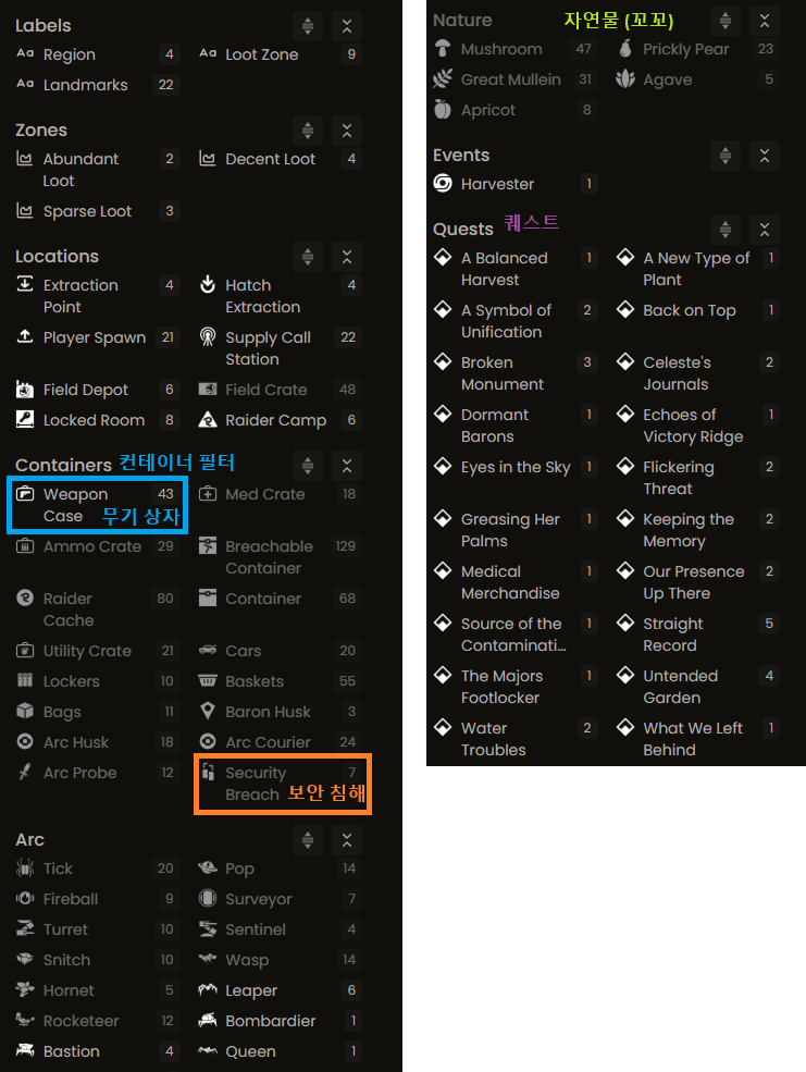 특히 유용한 분류가 Weapon Case 분류와 퀘스트 분류이다.