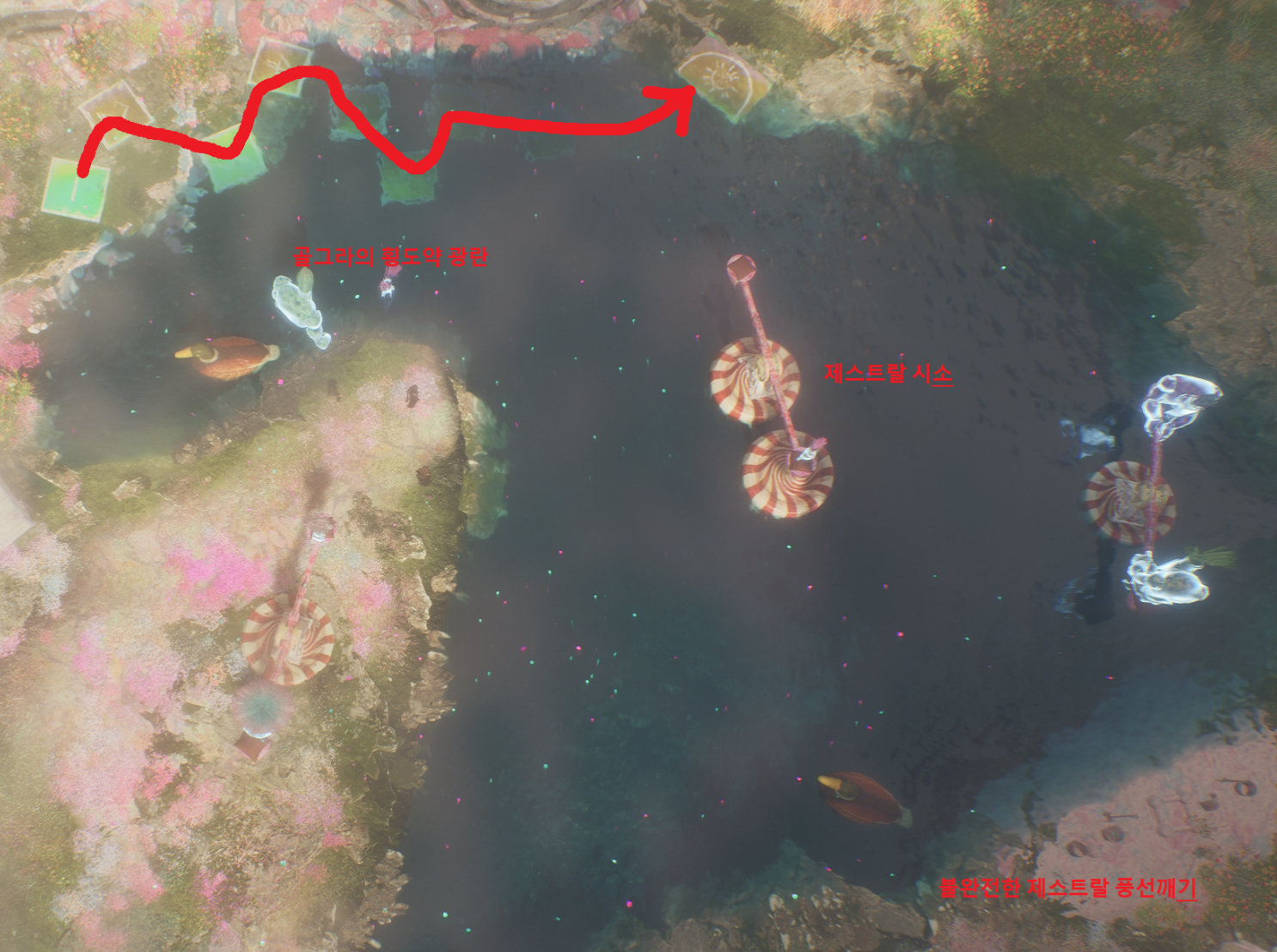 신규지역 베르소의 밑그림에서 중앙의 연못으로 가면, 제스트랄 미니게임들을 즐길 수 있다.