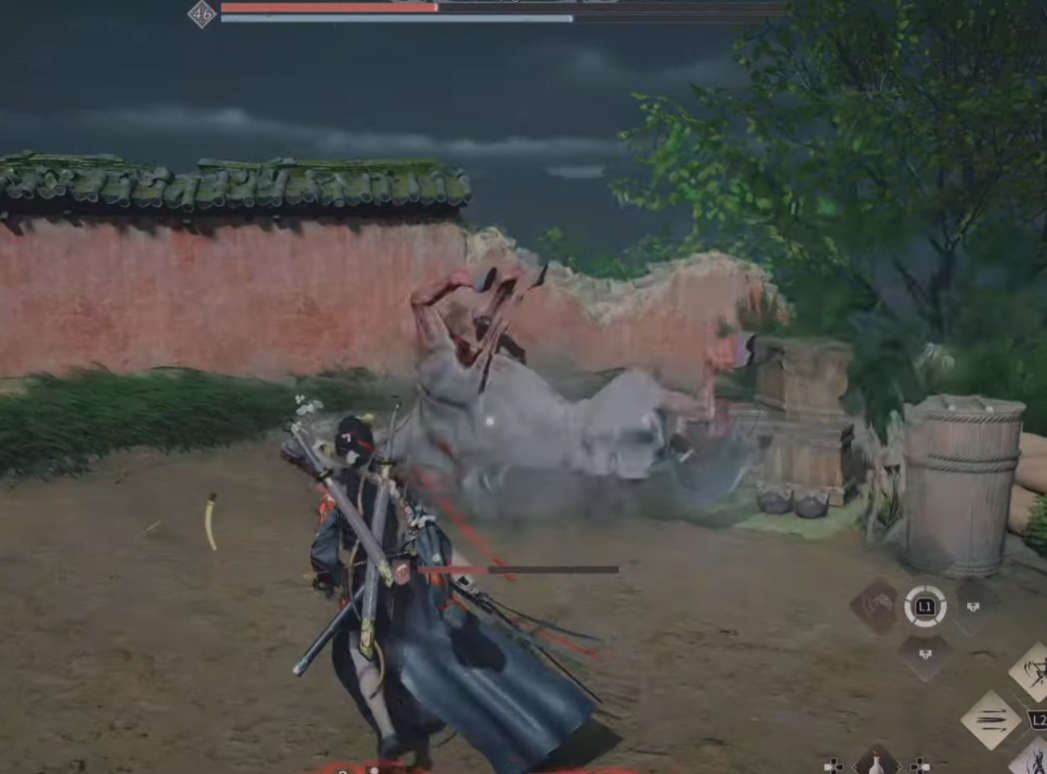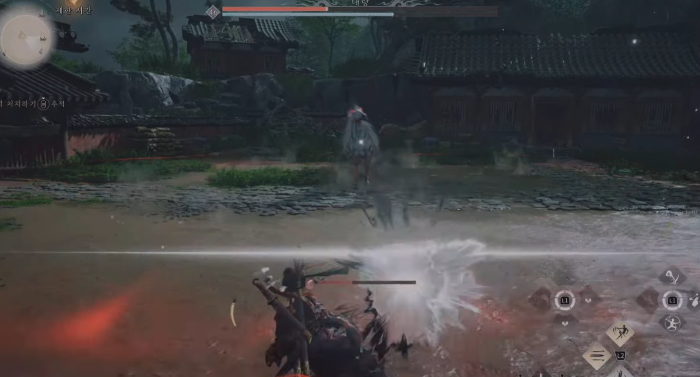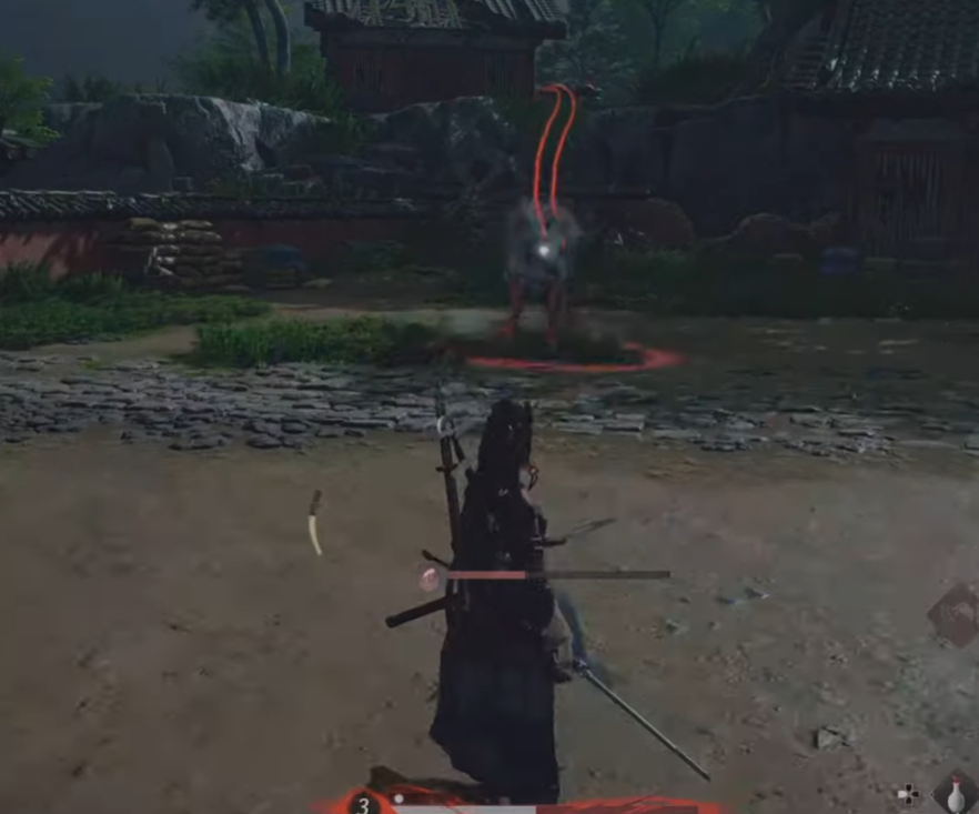 가까이 붙어 있었다면, 말이 다리가 찍히는 타이밍이 패링타이밍이지만, 말에서 멀리 떨어져있다면 빨간 원이 다가오는걸 잘보고 패링해야한다.