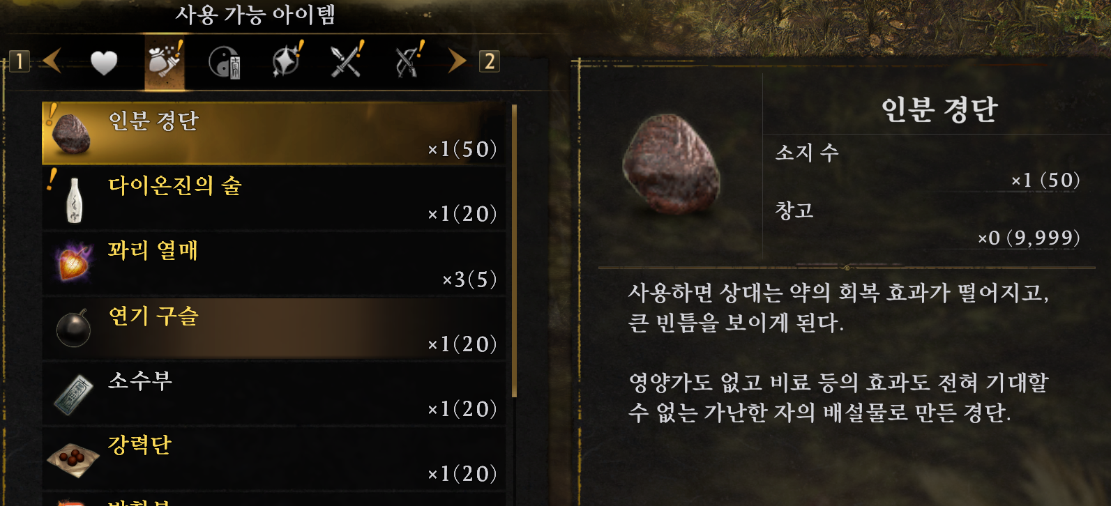 6) 인분 경단의 경우, 트로피/업적에 사용되니 팔거나 사용하지 말자. (30개 필요)
