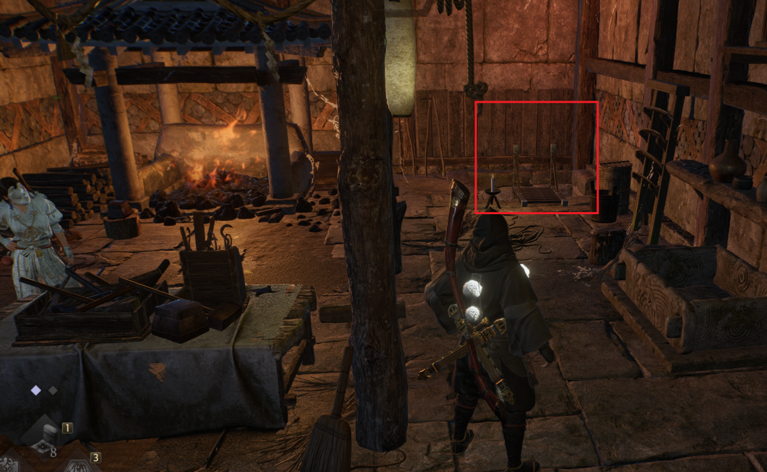 대장장이 뒤에 지하실로 가는 구멍이 있습니다.