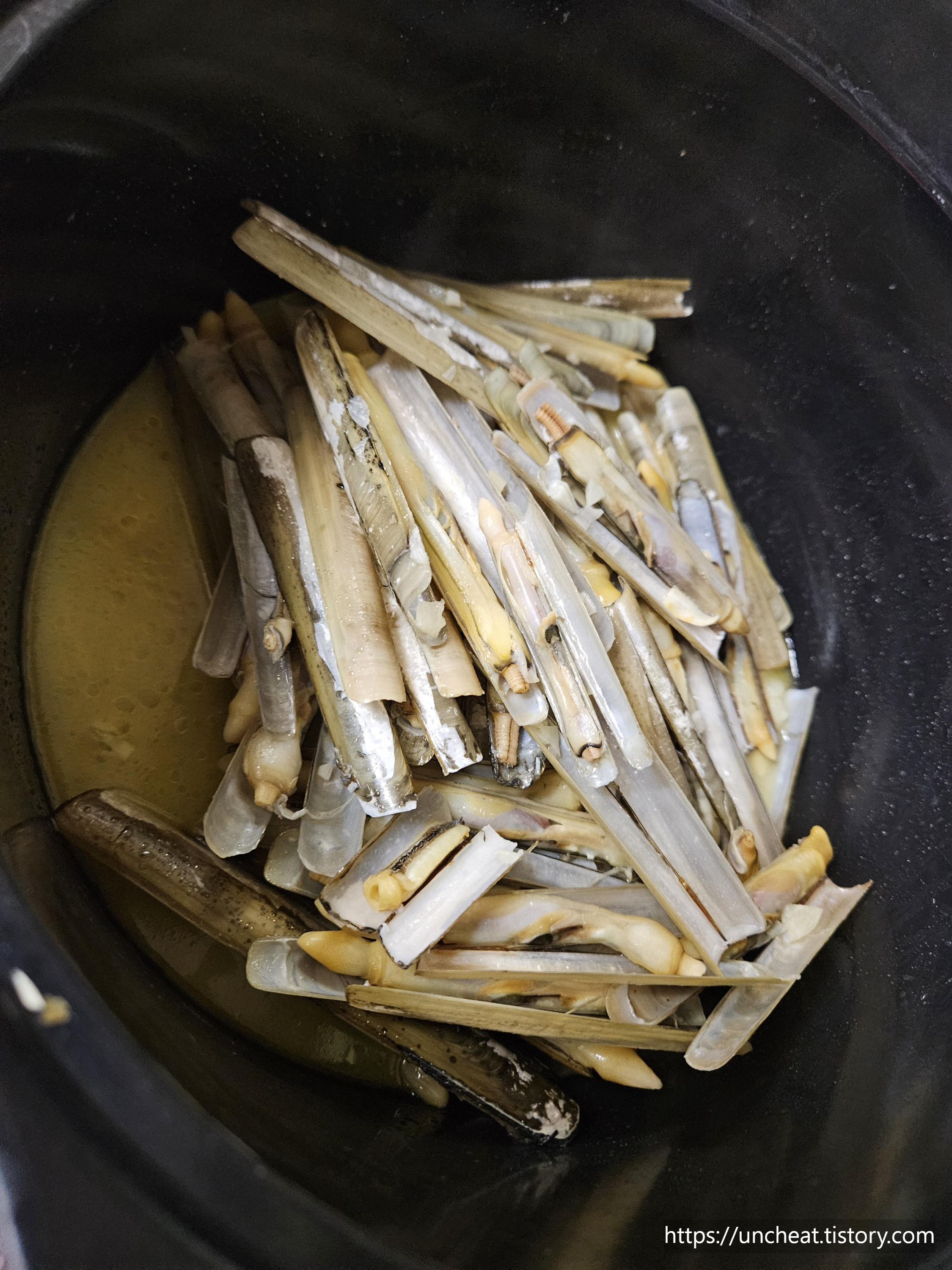 다음날 남은 맛조개+국물로 해장했는데 세상 시원....