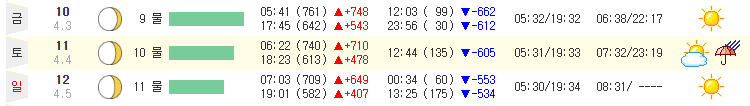 물때 확인은 아래 사이트에서, 간조시각 -3시간부터 가능하다. 어촌계에 전화해도 당일 물때 시간 알려준다고 한다.