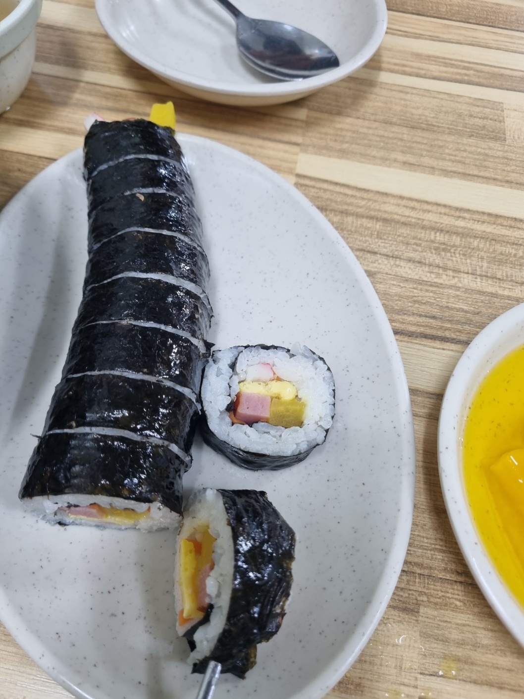 김밥 맛있다. 별거 안 들은 평범한 김밥인데 떡볶이 국물과 매우 잘 어울린다. 매장에 있으면 김밥만 테이크아웃하시는 분들도 많을 정도.. 가격도 저렴하고 밥과 재료, 그리고 김밥 간의 절묘한 밸런스가 매우 좋았다. 고소한 참기름 향도 킥이다