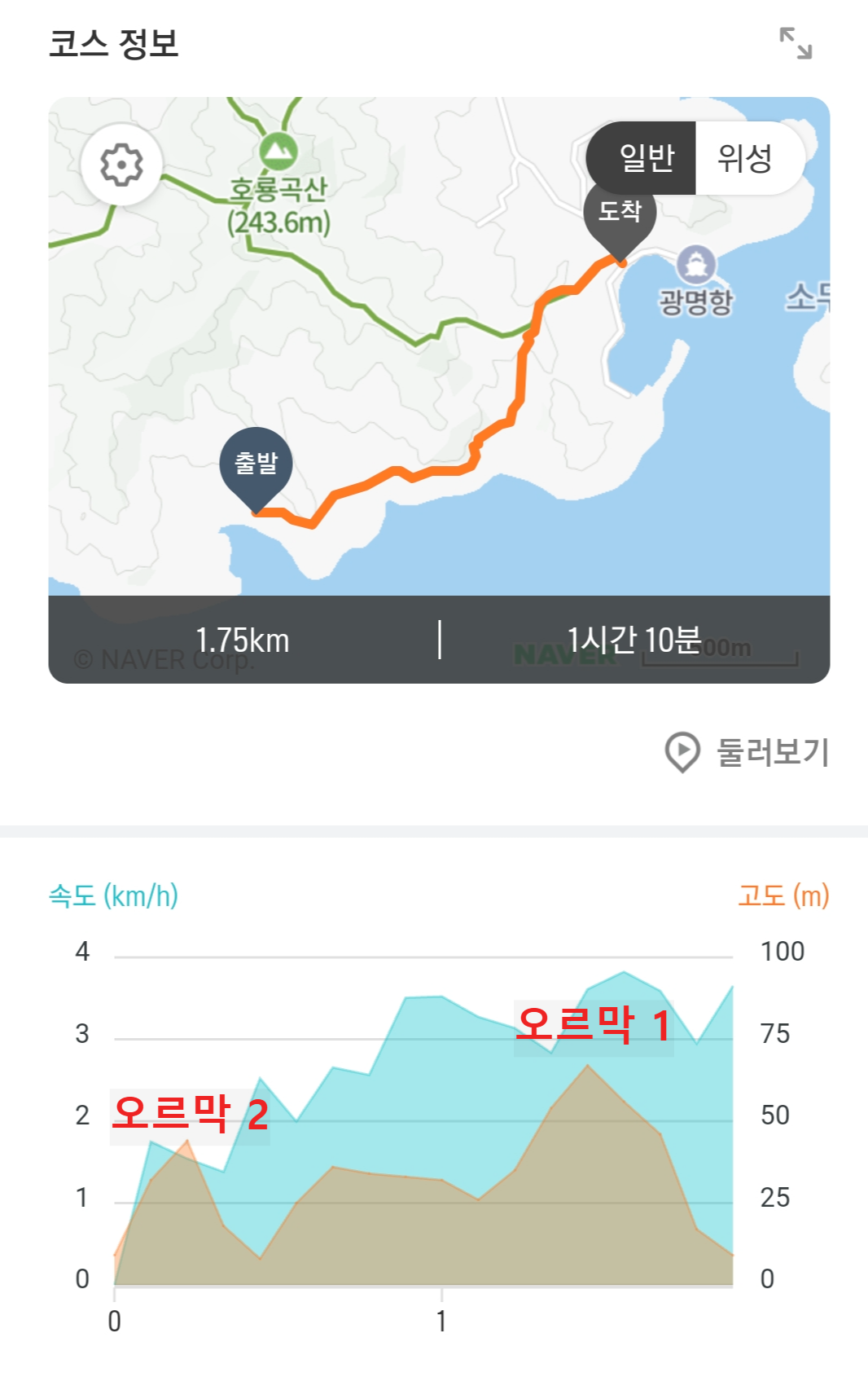 - 소요시간: 편도 1시간 (평속 2.5km)