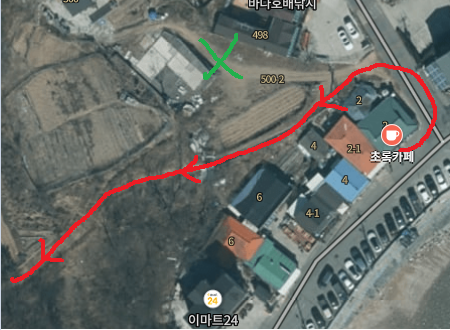 입구는 초록까페 바로 뒤에서 시작한다. 우측으로 올라가지 말고, 좌측 초록까페에 딱 붙어서 올라가는 길이 시작 길이다.