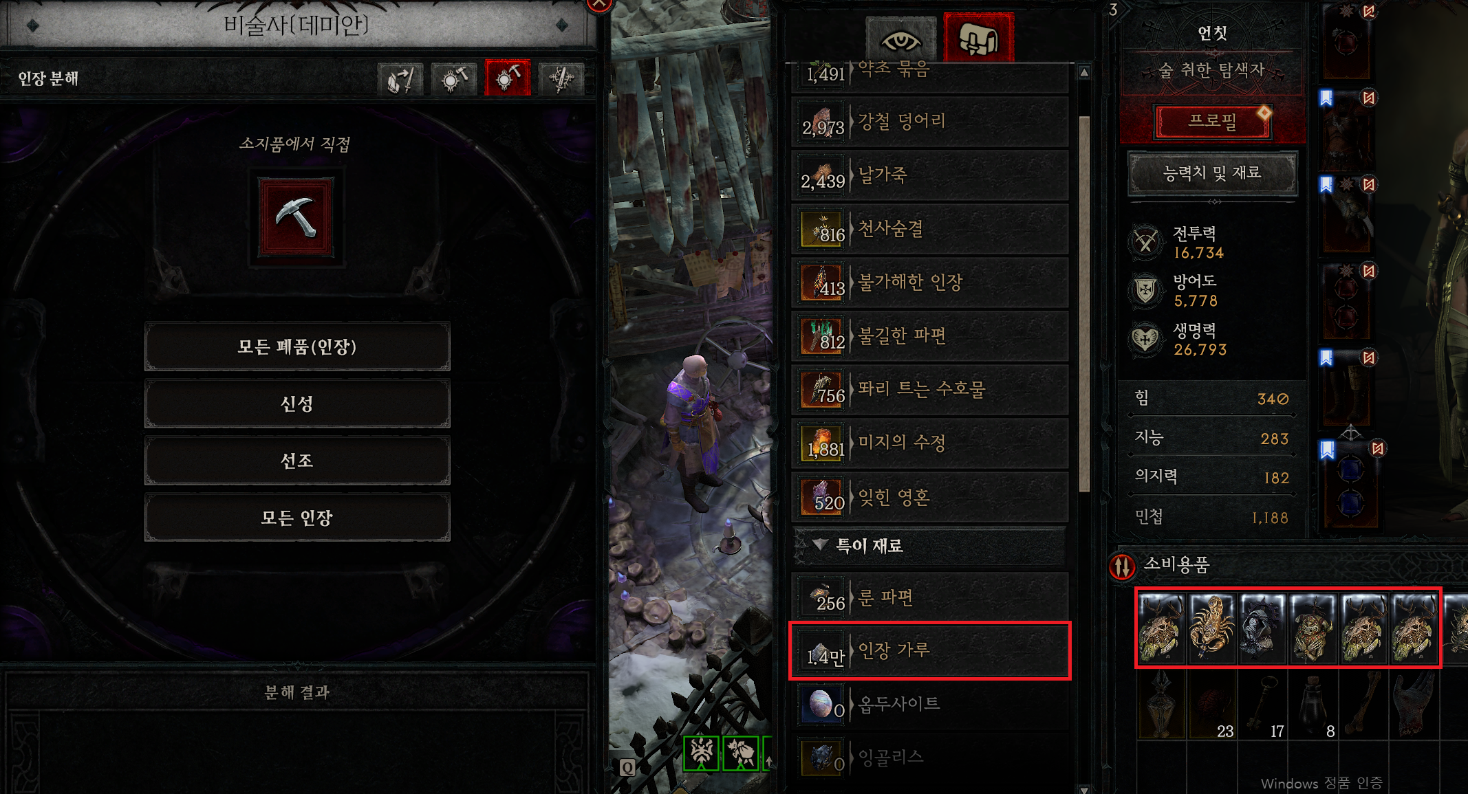 악몽 던전을 돌기위해선 인장을 만들어야 하는데, 아마 보물 고블린이나 지옥물결에서 인장을 좀 수급했을 것이다.