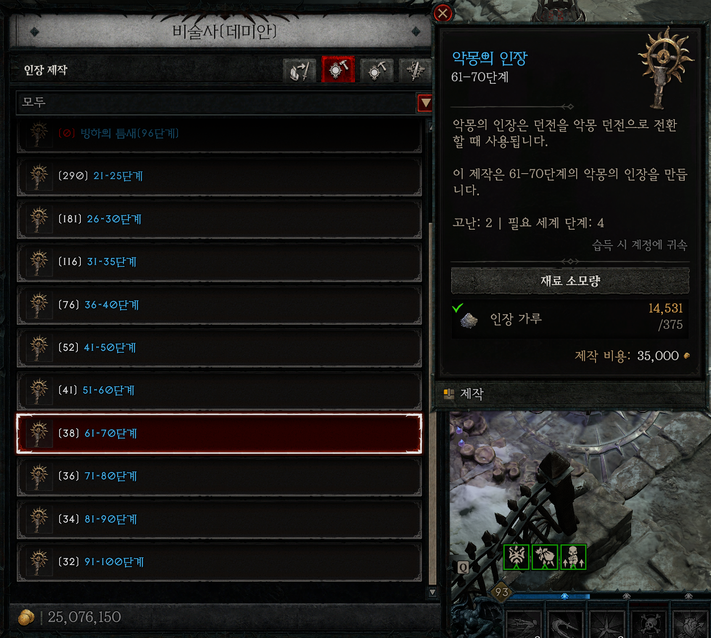 내 레벨 및 스펙에 맞는 단계의 인장을 만든다.