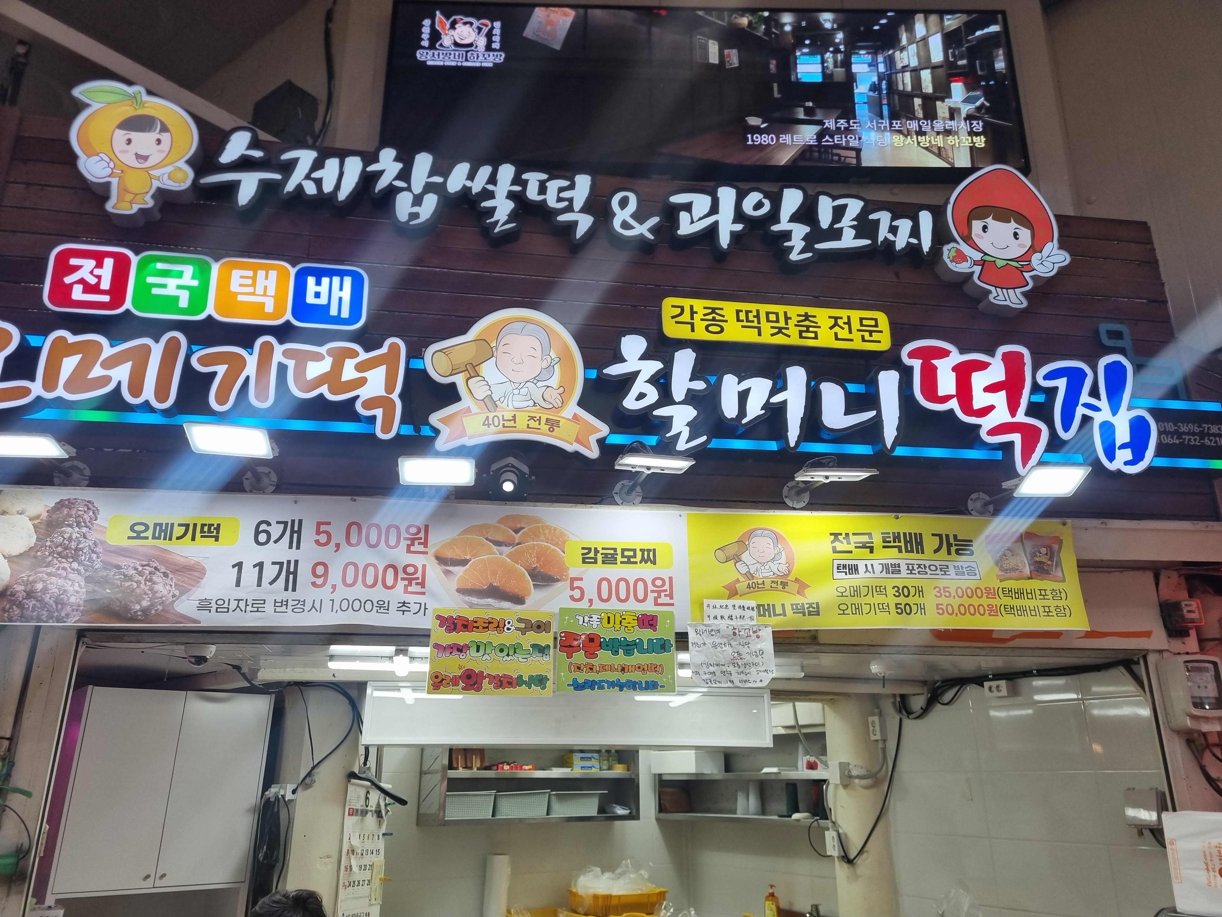 주소: 제주 서귀포시 중앙로42번길 24 할머니떡집 (올레시장 1번 출입구에서 가까움)