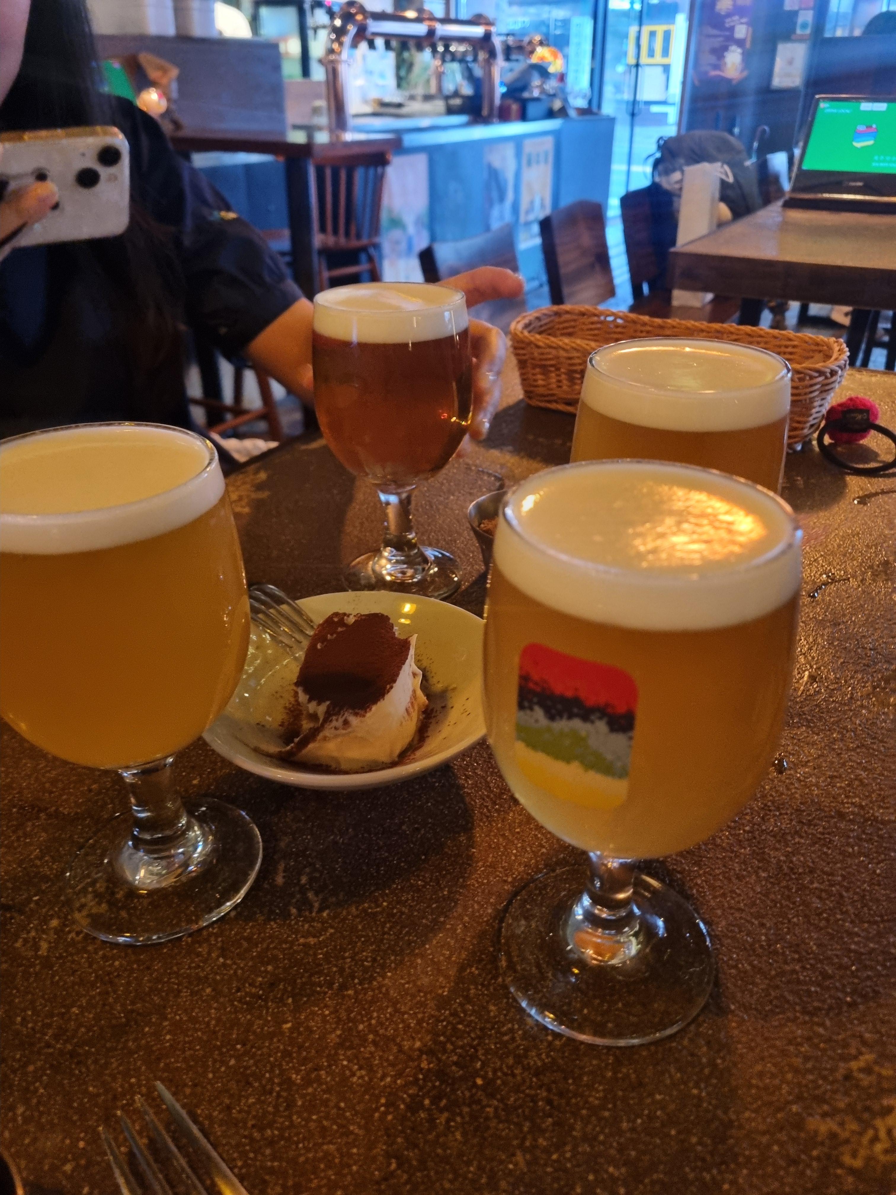 우당땅땅을 받고 향을 느껴보았는데 땅콩향이 정말 고소하다. 살짝 달달한듯한 맛도 엄청 맛있고 땅콩향이 계속 나는게 제주 특산 맥주같은 느낌도 듣고 너무 좋았다.. 티라미수와의 마리아주는 그냥 미쳐버렸다.. 내꺼 한입씩 먹은 동행들도 다들 우당땅땅 바로 주문해버렸다..