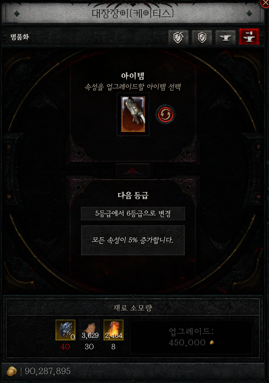 무기류 12강 먼저 띄우고, 방어구 8강 순으로 진행하는게 좋다고 한다.