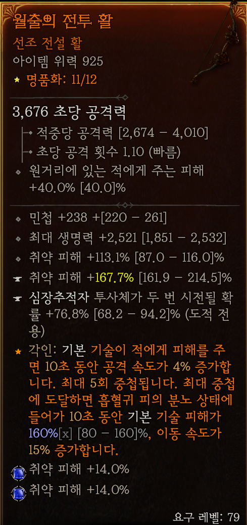 이 랜덤 25%를 1번 받으면 해당 능력치는 파란색/2번은 노란색/3번은 주황색으로 아이템에 표시된다..