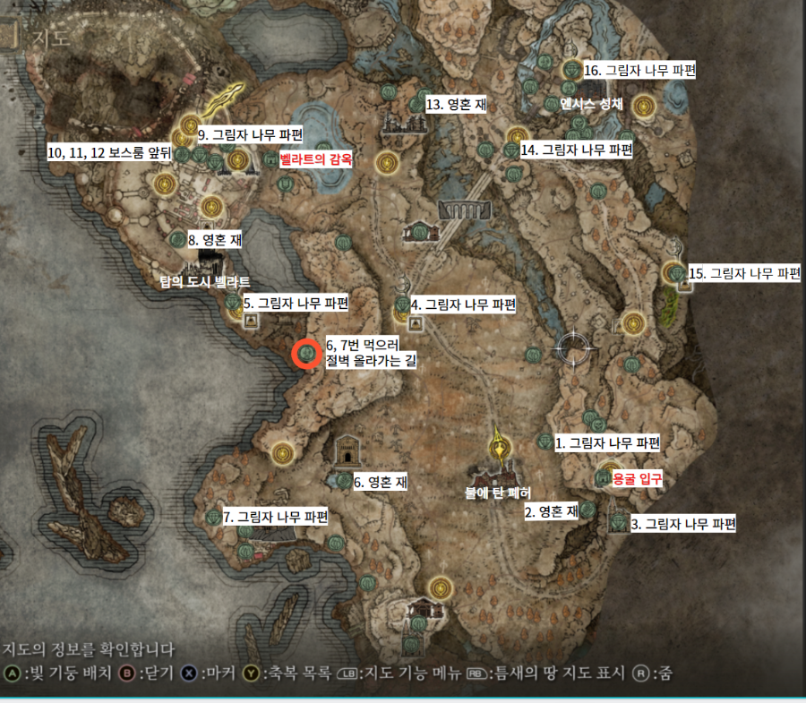 - 5편 나락 지역 그림자 나무 파편 위치 지도: https://uncheat.tistory.com/107