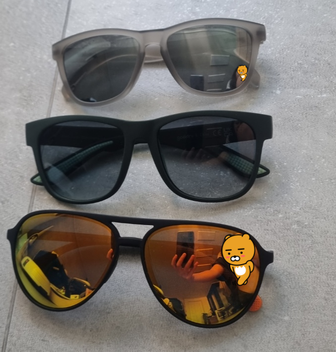 너무 운동st.(오클리나 고글류)인건 싫고 약간 일반 선글라스인척 하는 제품을 찾고있었고, 그늘과 태양볕을 오갈때 벗었다 썼다하는게 귀찮아서 편광이나 변색 선글라스를 찾다가 후기도 좋고 가격도 착한 구더를 발견하였다.