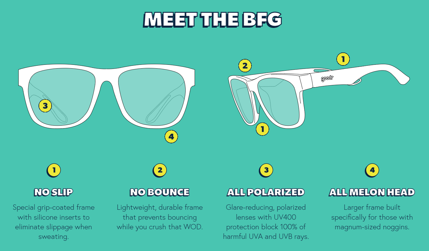 구더 선글라스의 공통적인 특징은, Lightweight, No slip, No bounce, All polirized이다. (가볍고, 땀 때문에 미끄러지지 않고, 운동 시 코에서 튕기지 않으며, 편광+자외선 차단 렌즈라는 점이다) 이런 특징 때문에 러너들이 많이 구매하는 것으로 보였다.