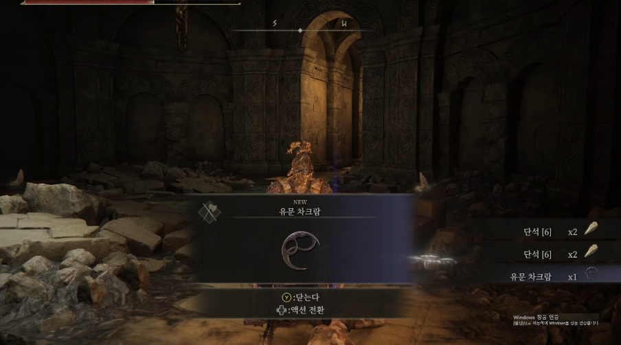 레버 열고 전진하면, 우측과 정면에 골렘 두마리 있는 방이 나온다. 앉아있는 놈부터 뒷치기로 빠르게 잡자. 골렘 두마리 잡고 루팅하면 유문 차크람을 획득할 수 있다.