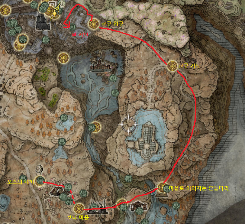 그림자 알터 지역 모스의 폐허 축복에서 남쪽으로 쭉 가면 나오는 모스가도 남단 축복에서 징벌 요새로 진입
