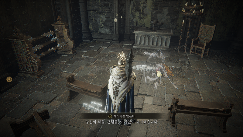 2) 그림자 알터 가도의 십자 축복에서 출발, 성전 교회에서 퀼라인 암령 처치(위치 링크의 지도, 2번 참고) > 기도실 열쇠 획득