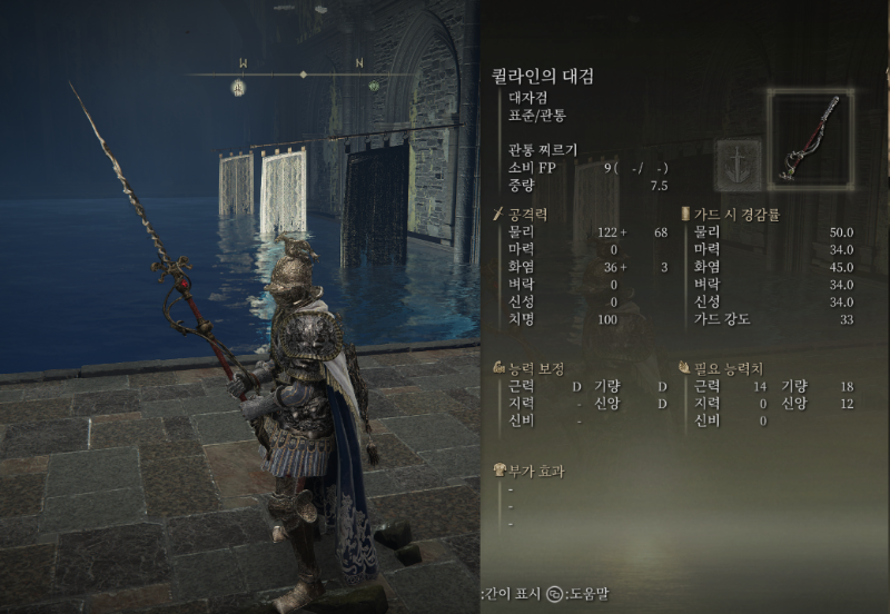 나는 어둠의 눈동자막을 줘서 퀼라인의 대검을 획득했다. 스탯과 룩은 상기와 같다.